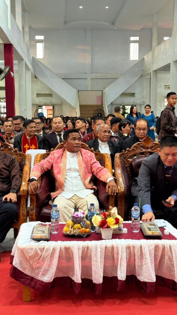 Pelalawan, ( Mataandalas) - Bupati Pelalawan H. Zukri, S.M., M.M., menghadiri Perayaan Natal Umum Kabupaten Pelalawan Tahun 2025 yang dilaksanakan di Gedung Jeremi, BTN Lama, Pangkalan Kerinci, Kamis (4/12/2025). Kegiatan ini dihadiri oleh Kapolres Pelalawan AKBP John Louis Letedara, S.I.K., sejumlah kepala Organisasi Perangkat Daerah (OPD), para pendeta, serta para jemaat dari berbagai gereja di Kabupaten Pelalawan.