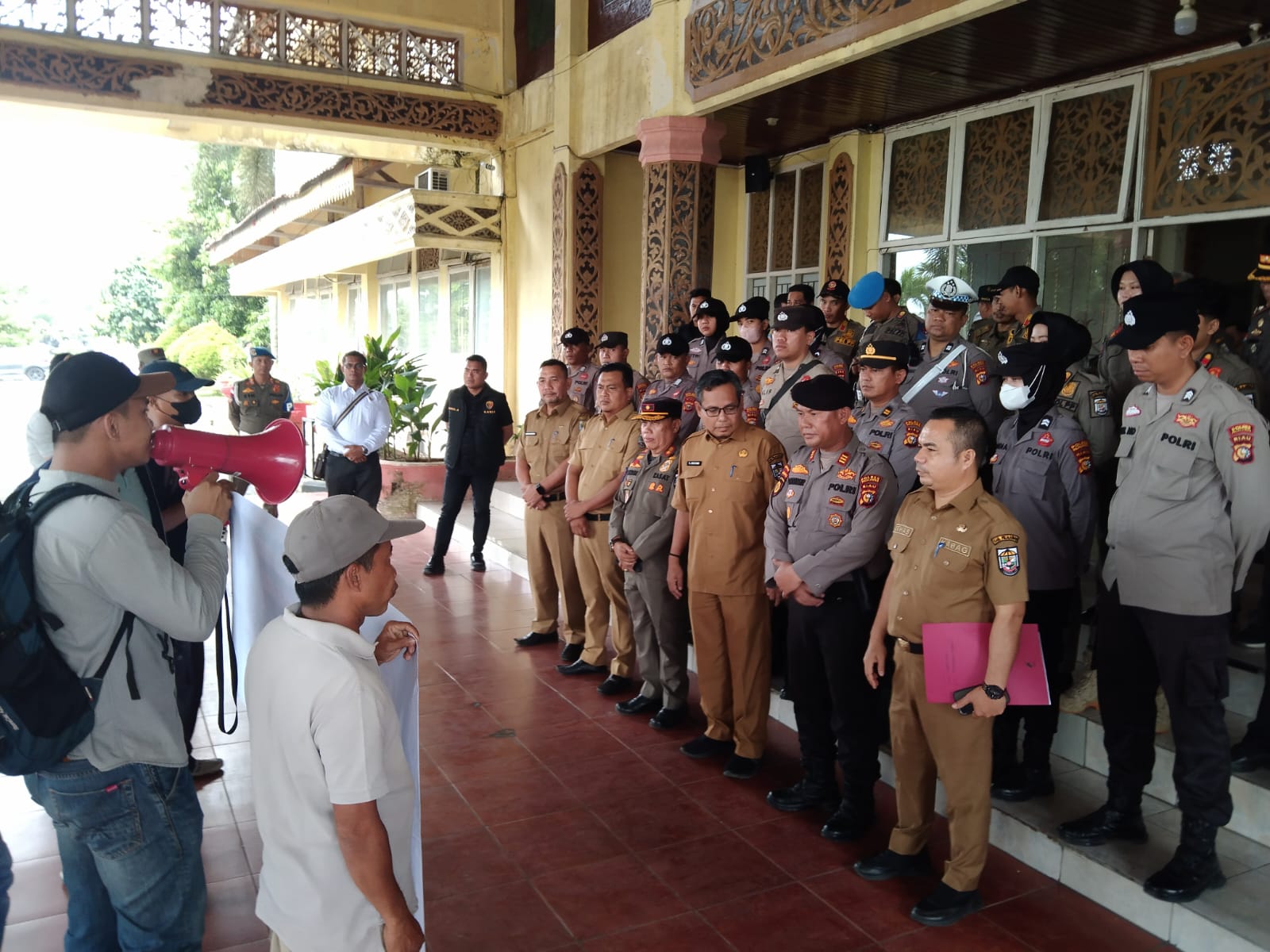 Di kantor bupati, massa sempat berorasi dipintu masuk gedung kebanggaan masyarakat Kabupaten Pelalawan itu. Sekdakab Pelalawan Tengku Zulfan datang menemui pendemo dan mendengarkan aspirasi yang disampaikan.