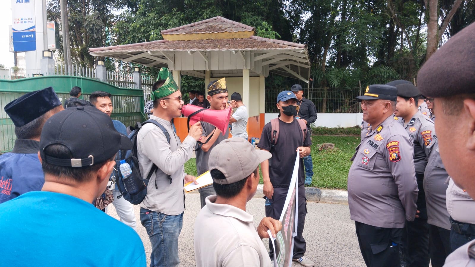 PELALAWAN, (Mata Andalas) - Aliansi Mahasiswa Peduli Masyarakat Pelalawan (AMPMP) menggelar aksi damai di pos 1 RAPP untuk memperjuangkan hak atas fee tanaman kehidupan yang tidak dibayarkan selama 32 tahun sejak perusahaan berdiri di negeri seiya sekata ini, Senin (8/12/2025)